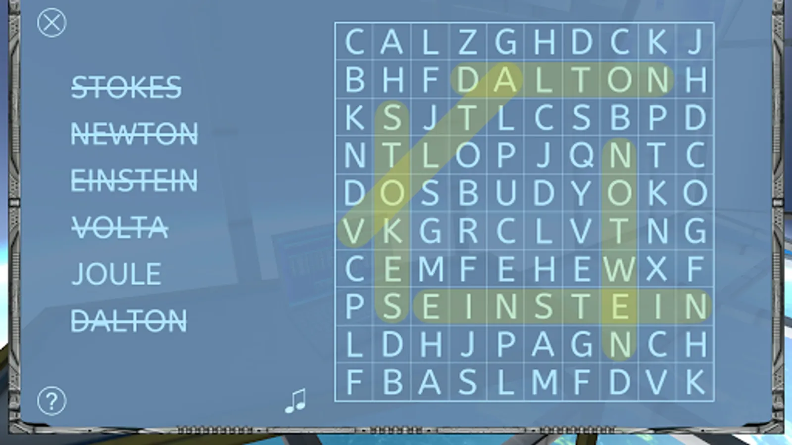 Word search puzzle game designed for kids 9 - 12 years. Helps to build vocabulary, introducing words with a science, physics, engineering, astronomy, and exploration theme. Words are hidden forwards, backwards, and diagonal in a 10 x 10 grid.