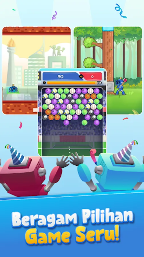 You can choose from various types of games in Maen Yo!, from puzzle games, word games, to bubble shooting games. Each game has different challenges and levels, so you won't get bored.