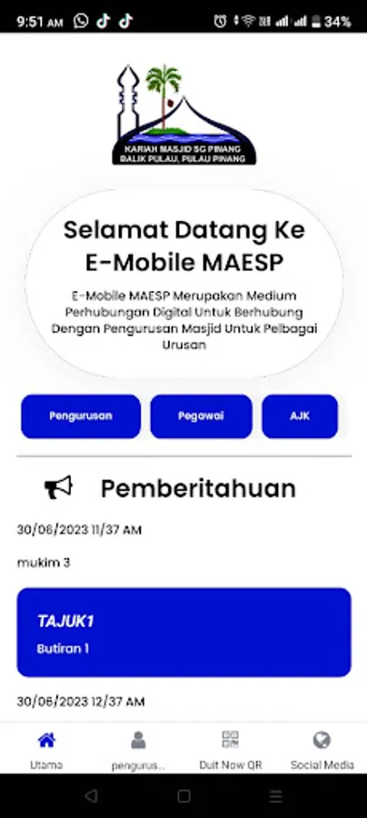 e mobile masjid Al Ehsan Sungai Pinang ini berfungsi untuk menghubungkan semua ahli qariah dan memberi hebahan pantas dengan menggunakan kemudahan digital ke arah pengurusan yang lebih baik.