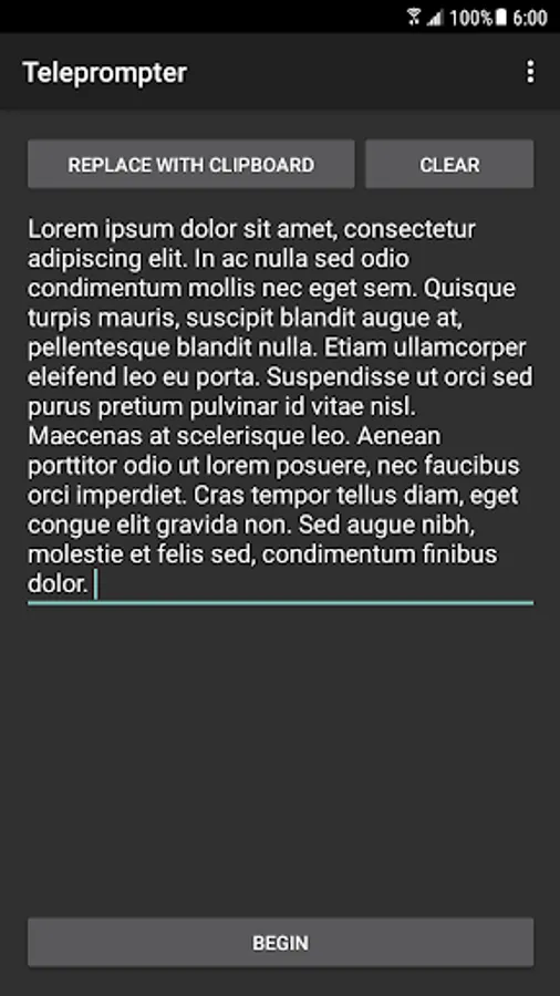 An added benefit to using this teleprompter on your phone is that, when recording videos, the small screen will make it impossible for your viewer to tell that you are reading text. Place the phone near the lens and it'll look as though you're looking directly at the viewer for the entire video! On the other hand, tablet users have the benefit of a large screen and can use the app as an actual teleprompter due to the ability to mirror text.