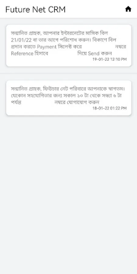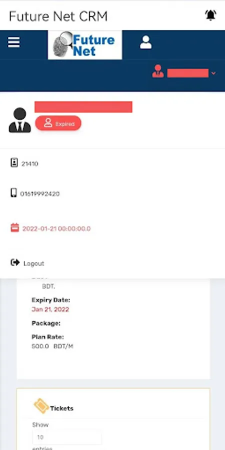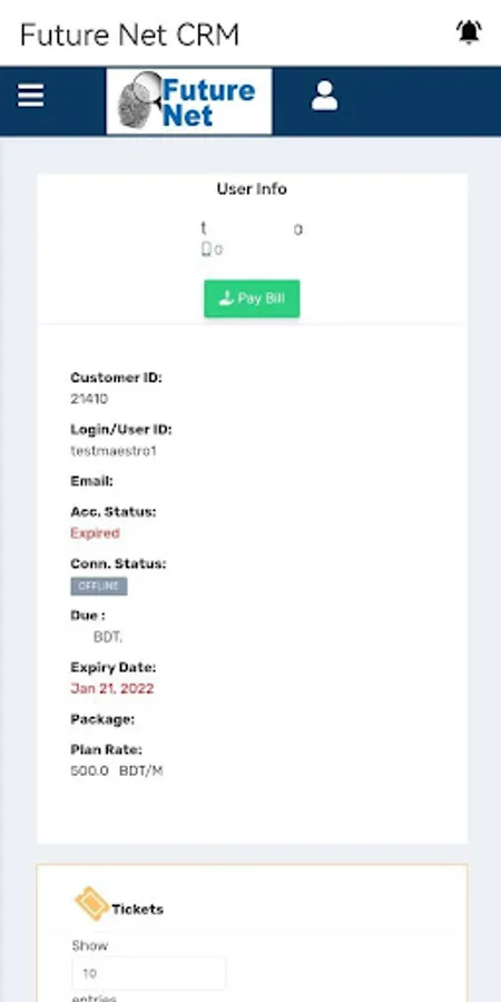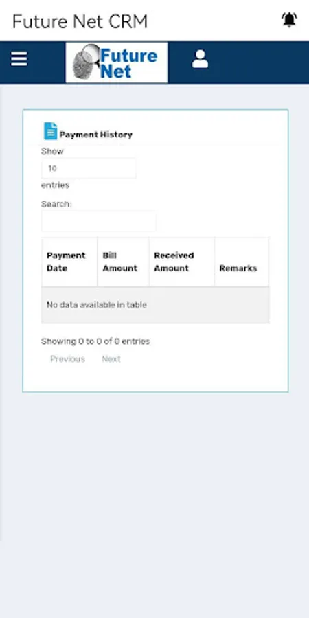 Future Net CRM is an extension of Future Net, which enables users to check their usage and activity logs. Users can also make payments through the app by logging in and validating credentials.