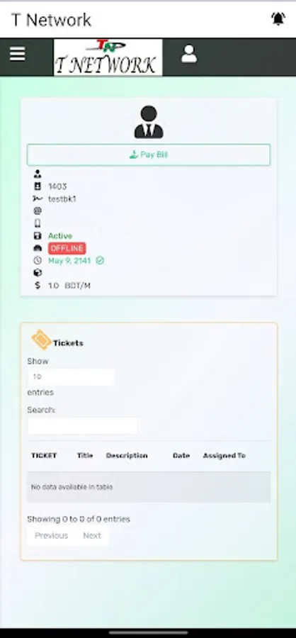 T Newtork is an extension of T Newtork customer portal, which enables users to check their usage and activity logs. Users can also make payments through the app by logging in and validating credentials.