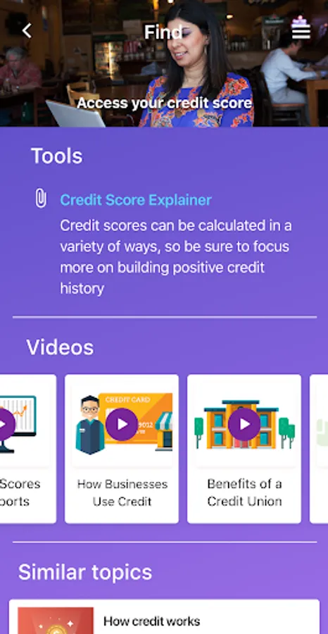 ● Trusted financial education content to help you build credit, explore your savings options, and prepare for financial emergencies