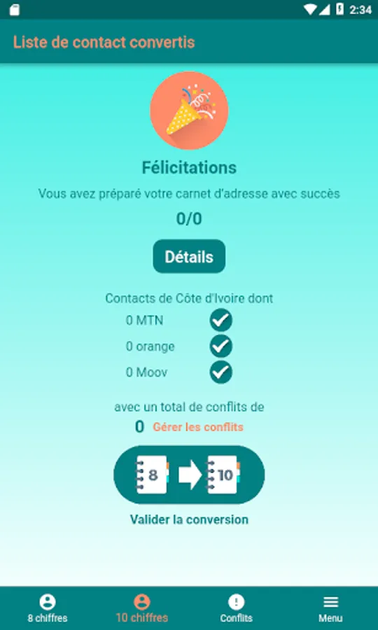 8a10 protects and transforms your Ivorian address book of 8 to 10 digits in complete security.