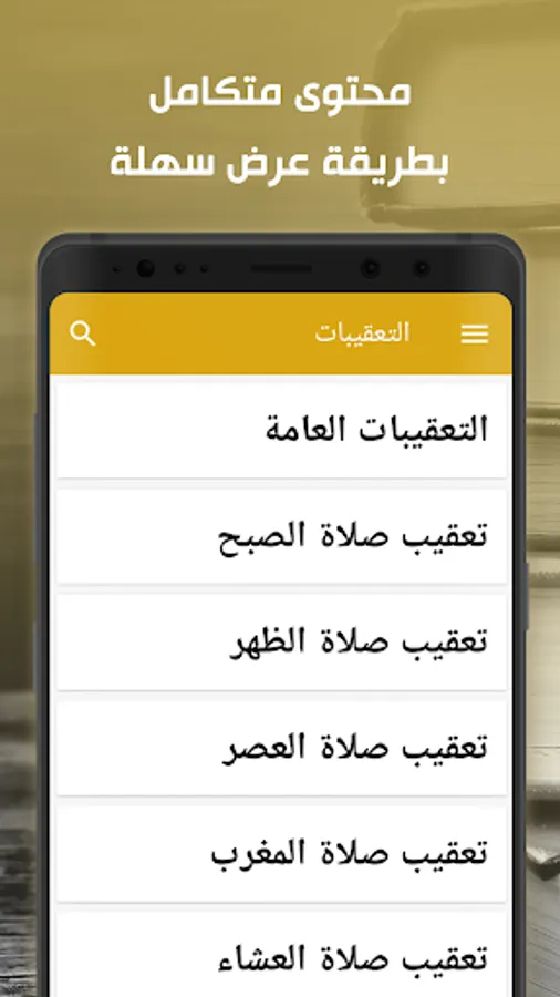The Islamic Jinan Keys application for Android includes several doors for easy access and browsing, as it includes several sections within the application list, which are as follows: