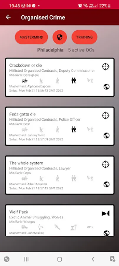 Discover the latest version of our immersive Mafia Mobile App. Unlock 60 skill levels through an enhanced contract system. Compete for 7 Godfather positions, aiming to secure one for yourself.