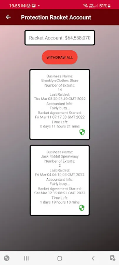 Team up with five Mafioso friends, choosing from 65+ crimes with varying skill requirements and payouts. Rise in ranks, aiming for Godfather in 150 days. Join a crew for safety or become a Mademan, leading your crew and collecting tribute.