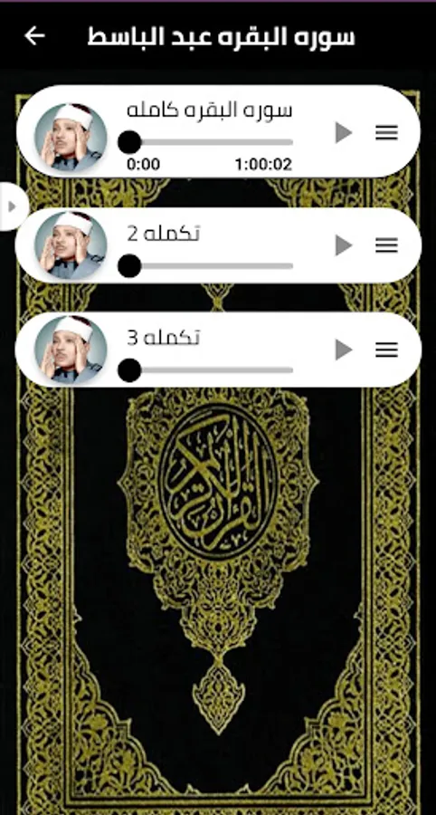The application of Surat Al-Baqarah in full for the reader, Sheikh Abdul Basit Abdul Samad