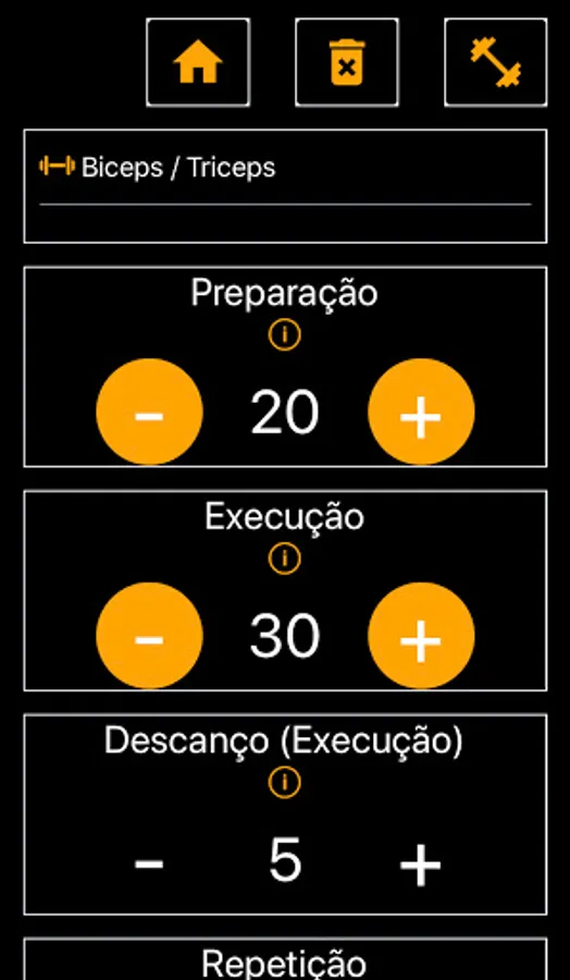 O app disponibiliza um cadastro fácil e intuitivo para que possamos configurar os exercícios de forma que cada segundo de execução e descanso esteja no seu controle.