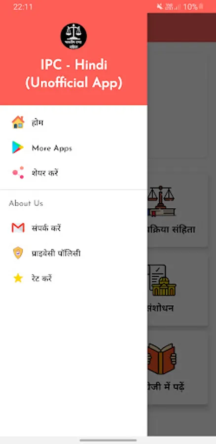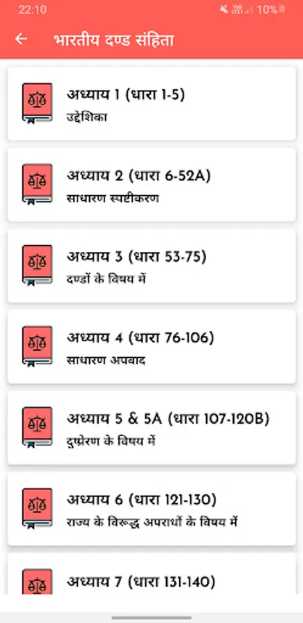 All Chapters of Indian Penal Code -IPC 1860 in Hindi ( Bharatiya Dand Sanhita / भारतीय दण्ड संहिता ) is available in this app. Easy to use interface will help users to access of data of Indian Penal Code -IPC 1860 easily.