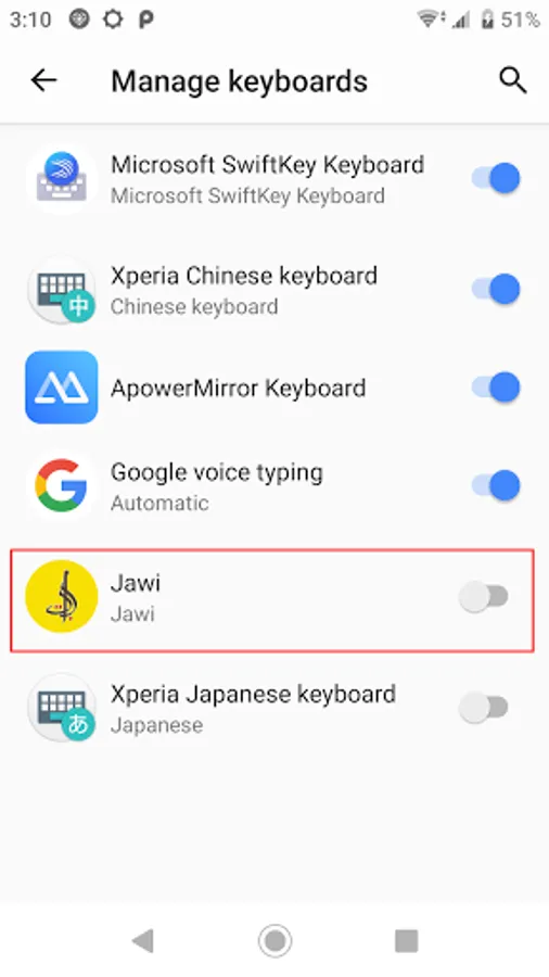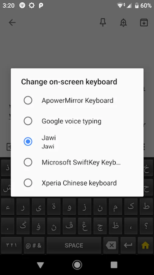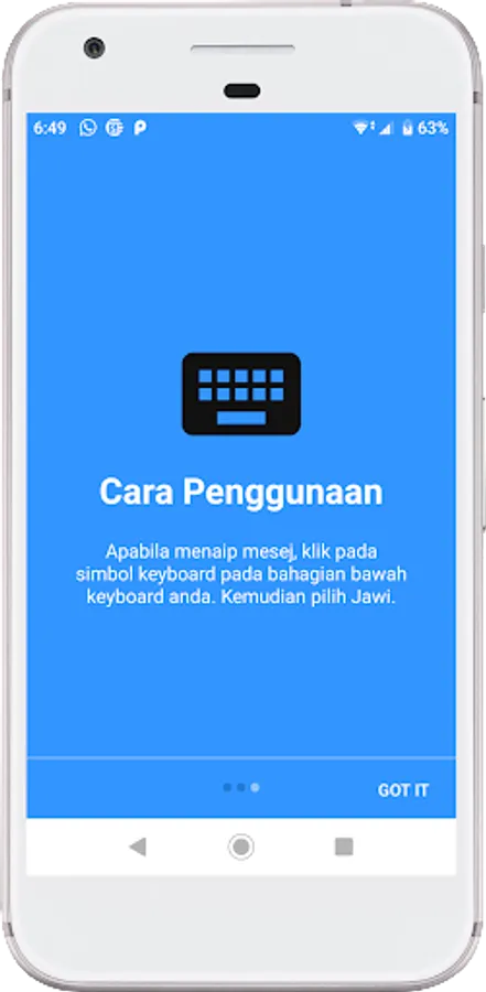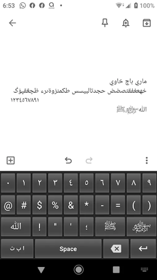 Type your message, email etc with Jawi/Arabic keyboard. The app will automatically connect the letters. Firstly, you must go to the Setting to activate the Jawi keyboard.