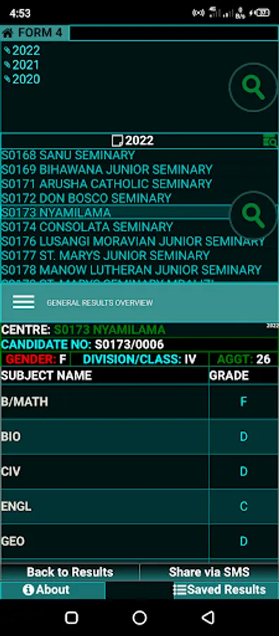 Matokeo ya kidato cha 4 Screenshots