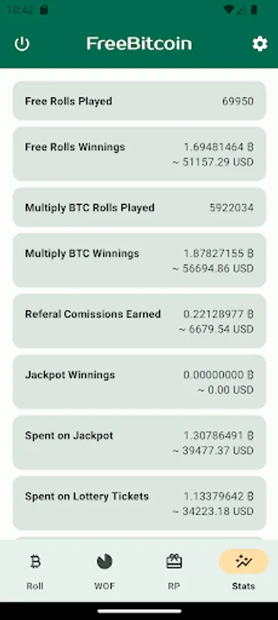 Account Statistics: Stay informed with comprehensive account statistics that provide a detailed overview of your earnings, rolls, rewards, and more. Track your progress and make informed decisions to optimize your Bitcoin accumulation.
