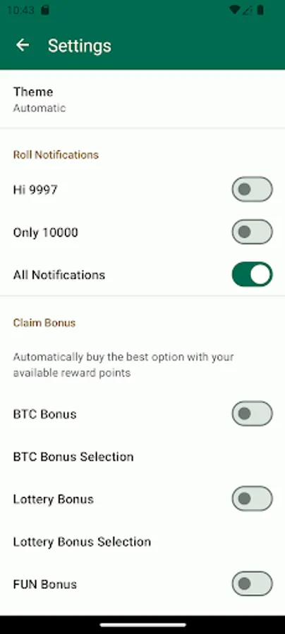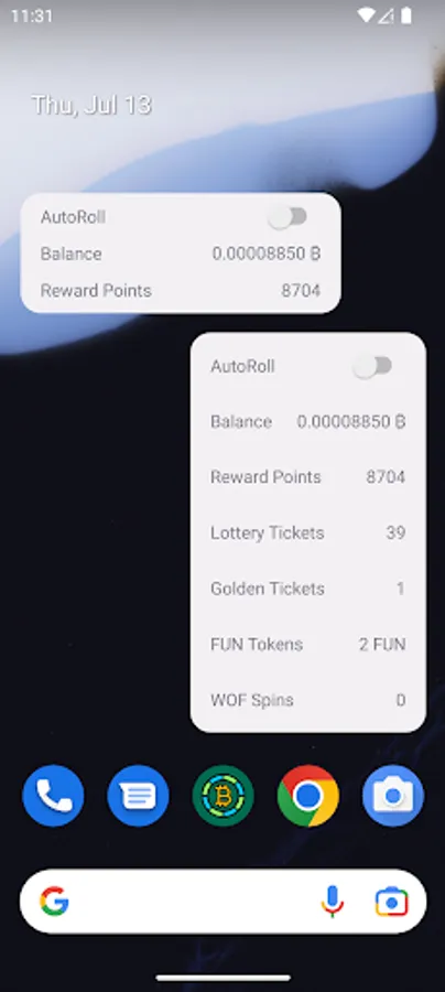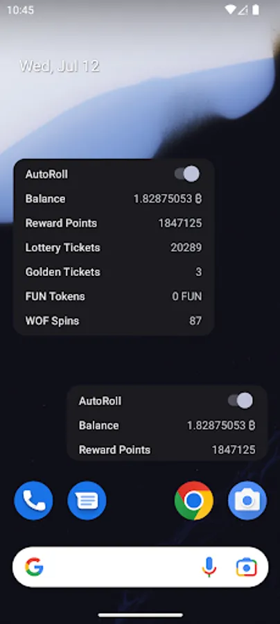 Premium Version Exclusive: Upgrade to the premium version and unlock a desktop widget that provides an at-a-glance view of your balances. Easily toggle the autoroll feature on or off, giving you complete control over your earning strategy.