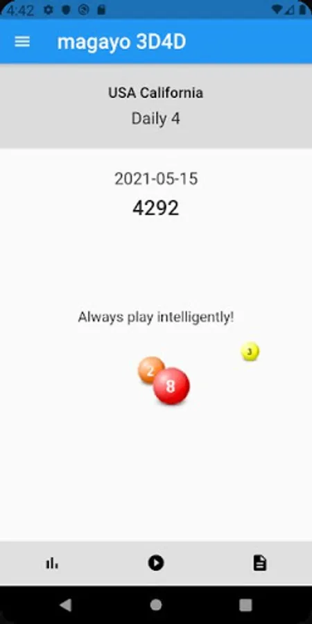 With magayo 3D4D, you can easily generate your tickets to play. You can also view the lottery results and the frequencies of the recent winning numbers. magayo 3D4D requires the use of an Internet connection. No other special permissions are needed and magayo 3D4D does not contain any ads.
