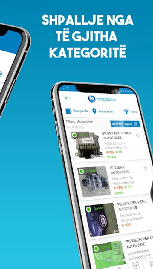 Magazina mbështet Përdoruesit Individual dhe Bizneset (Shitorët, Auto Sallonet, Agjensionet e Patundshmërive, etj.) si dhe kategoritë: Vetura në shitje, Patundshmëri, Elektronikë, Veshmbathje, Paisje Shtëpiake e shumë të tjera.