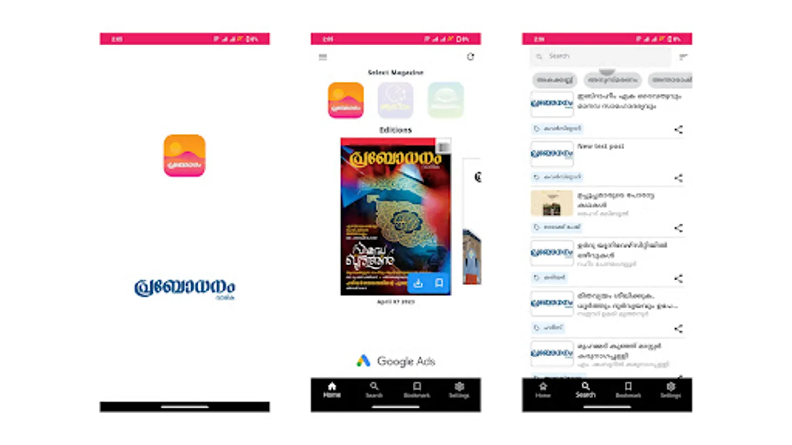 The Prabodhanam app is a platform for users to subscribe and read the Prabodhanam, Bhodanam, and Aramam magazines. Prabodhanam is a weekly magazine, Aramam is published monthly, and Bhodanam is published bi-monthly, all in the Malayalam language. The app offers a convenient way for users to access and enjoy these magazines, which cover a wide range of topics, including current affairs and family-oriented content. Stay up-to-date with the latest issues, articles, and features from these popular magazines through the Prabodhanam app.