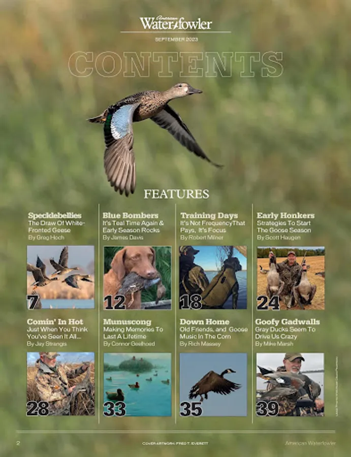 Overcoming the challenges of weather, water, mud, decoying birds, dog handling, proper guns and loads and getting to the birds owes much to the brilliant products manufacturers have brought to bear, and the remarkable destinations provided by guides and outfi tters. American Waterfowler answers the call for a dedicated duck and goose hunting magazine to lead fowlers into the new era, while carrying on the rich traditions gained in a century of American waterfowling.