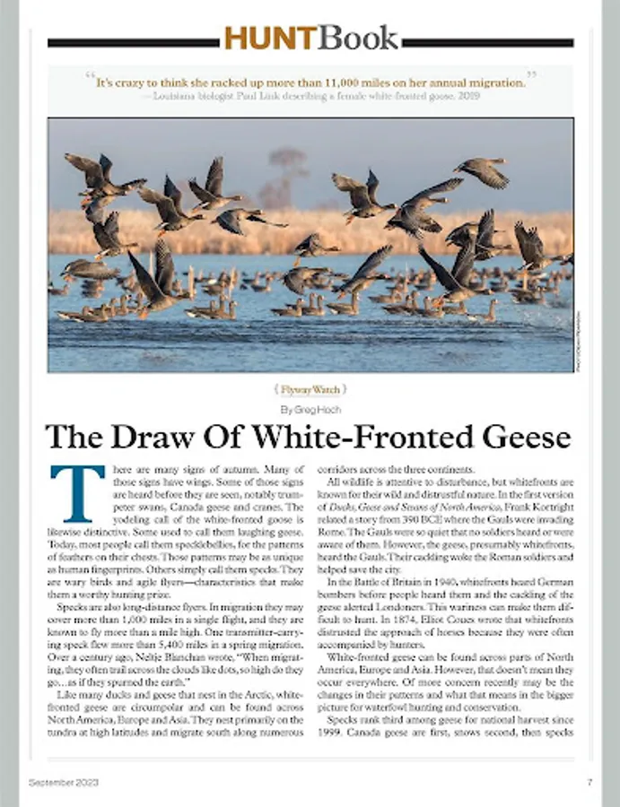 American Waterfowler focuses on fi nding solutions for the common problems hunters face. Within dedicated columns such as Duck Dogs, Shotguns, Shotshells, Decoying, Flyway Watch, Smart Money, Marsh Notes and Tried And Tested, experts whose passions reside at the heart of the waterfowling industry share their knowledge and experience, making American Waterfowler THE magazine for waterfowlers both young and old.