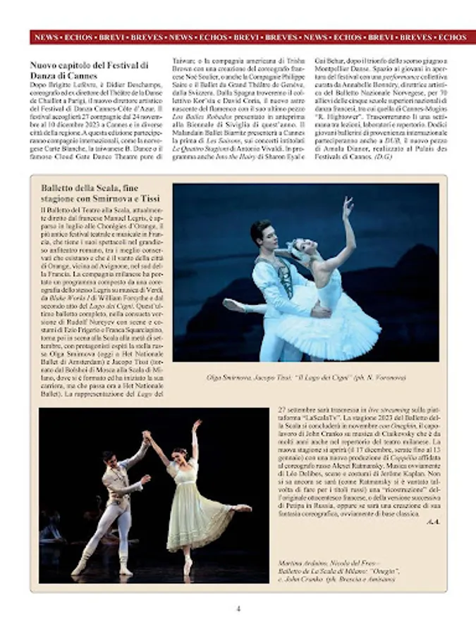 • Attualità italiana: fatti, commenti, interviste su temi attuali di vita della danza in Italia.