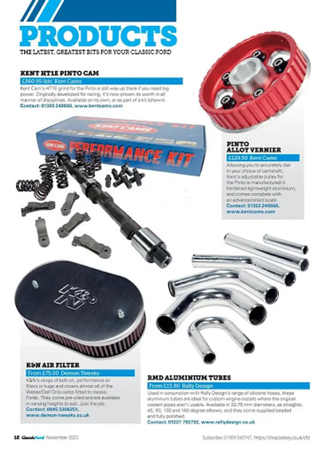 Classic Ford is the heart and soul of the global classic Ford scene. Whether standard or modified, if it’s a retro Ford it’s here — from the Popular and Anglia, through to the Cortina, Capri, Escort and Granada, to the Fiesta and Cosworth Sierra. Written in an authoritative but entertaining style, and with a heavy emphasis on top-quality photography, each issue is packed full of stunning feature cars, along with the latest news from the worldwide classic Ford scene — shows, events, club runs, and historic racing and rallying, plus much more. It can be tough to find a regular source of information on Fords that will allow you to complete your projects, but look no further, because Classic Ford gives you regular in-depth tuning and restoration articles, practical hands-on features, product news and tests, full buying guides and a strong readers’ classified section. A subscription to Classic Ford makes perfect sense! Why not treat yourself or somebody else to a year’s worth of the UK’s best selling Ford magazine!