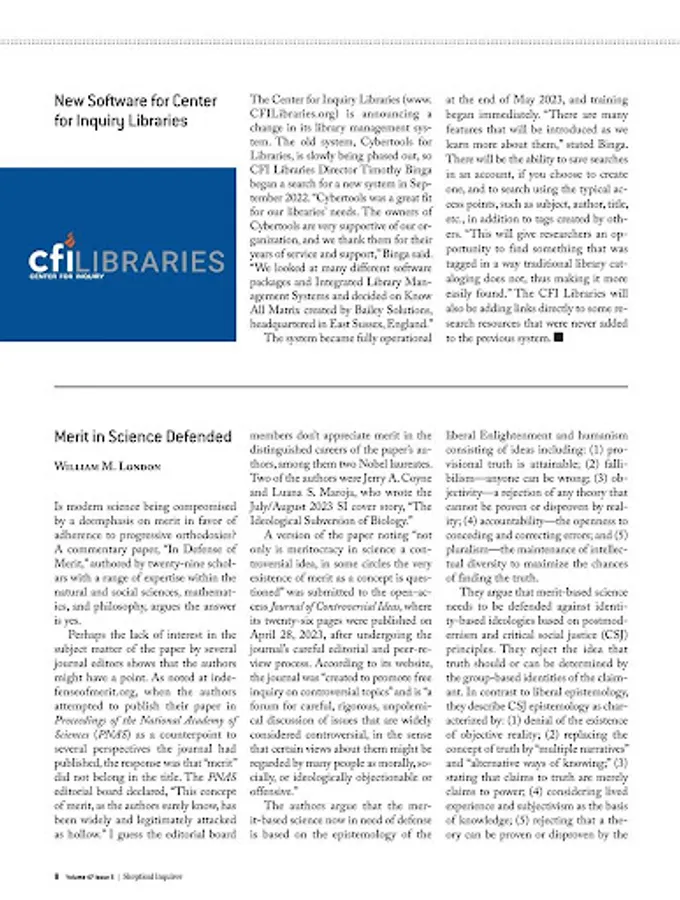 "Skeptical Inquirer is an unusual hybrid, part semi-popular magazine, part scientific journal. It's fair to say that we not only help to cross disciplinary barriers within scientific fields but bridge the gaps between the hard and soft sciences and between science and the general public."