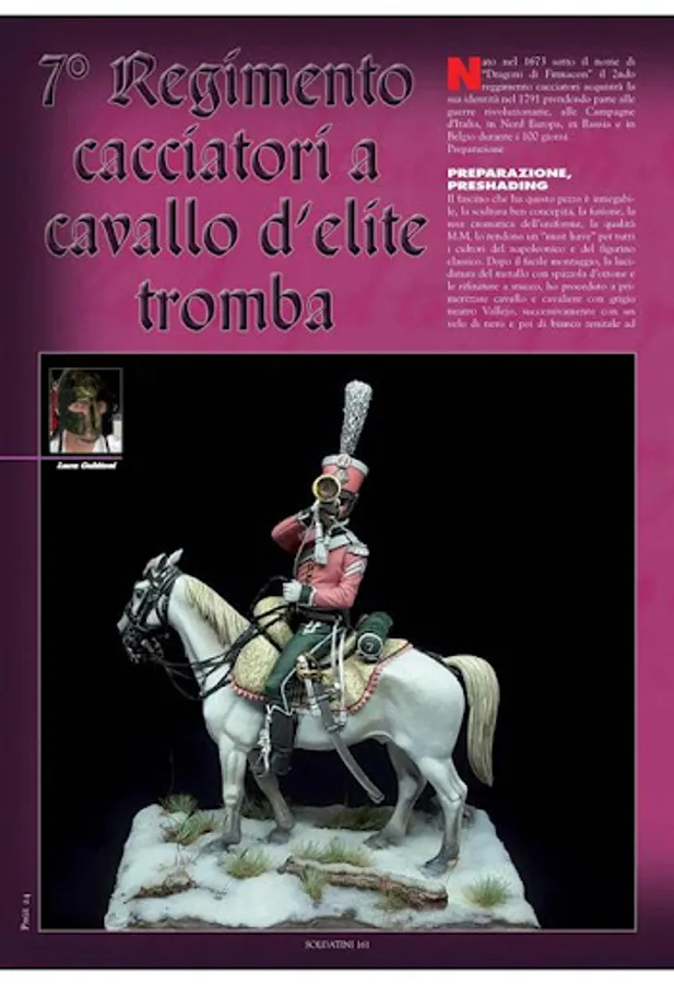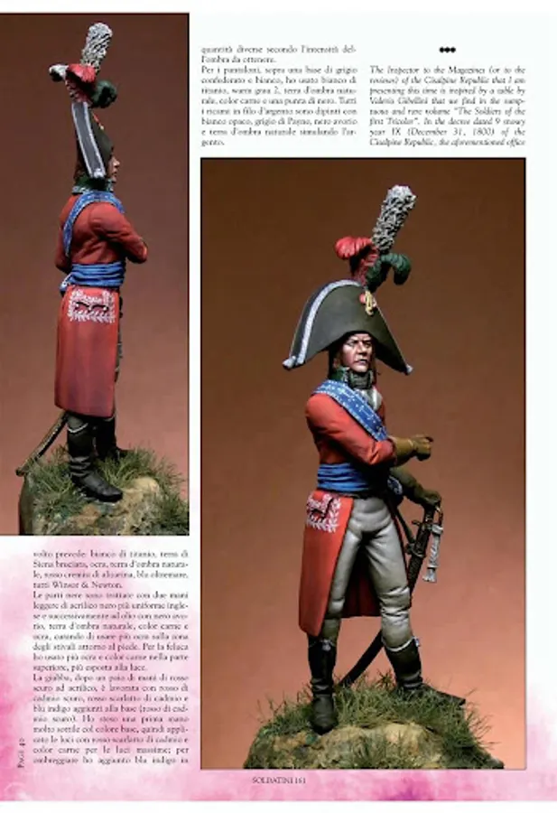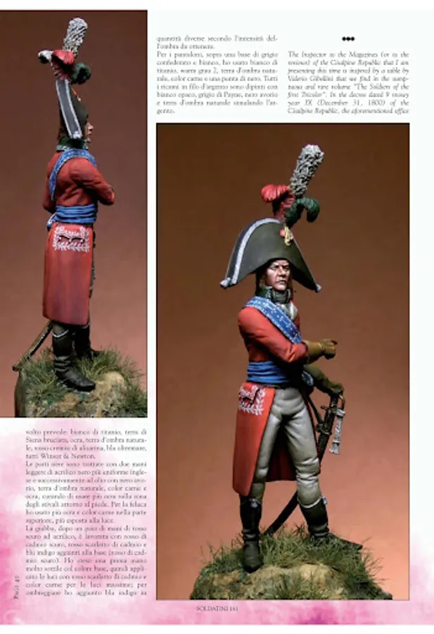Soldatini is an Italian Language bimonthly magazine on military and fantasy figures, covering all-time all-scale-figures, crafted by both national and international modellers. Particular emphasis is given on historical articles, SBS, and military illustrations. The technical aspects analysed in the articles deal with both the sculpting and painting aspect, and always an historical incipit. New releases, either military miniatures, toys or flat figures as well as books are punctually evaluated and reviewed.