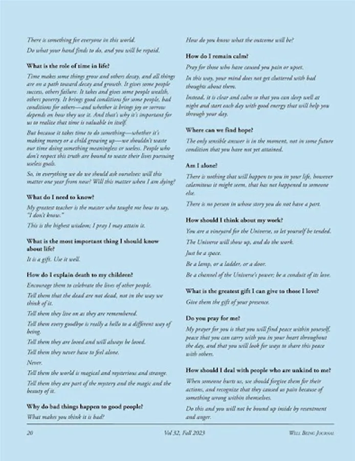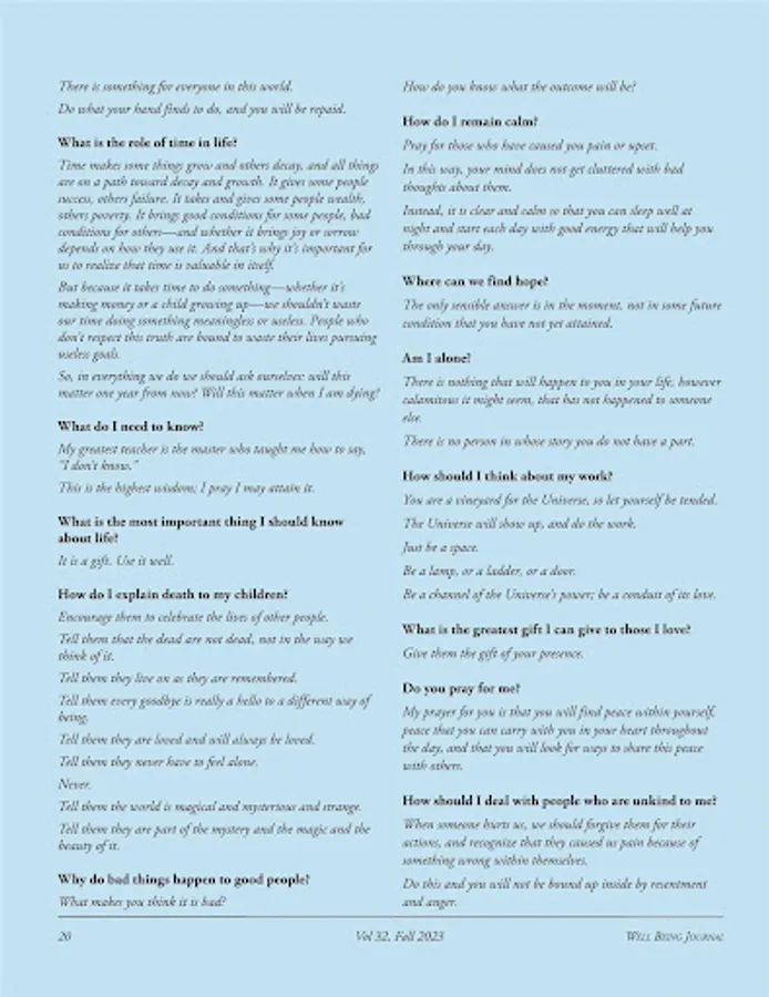Well Being Journal is dedicated to publishing cogent, concise, expert information about natural ways to prevent and heal illnesses and reverse aging. We herald the integration of medicine with physical, mental, emotional, spiritual and social aspects of health. We publish well substantiated feature articles and research notes covering those subjects as well as personal stories of healing—and we’ve been doing so for 20 years!
