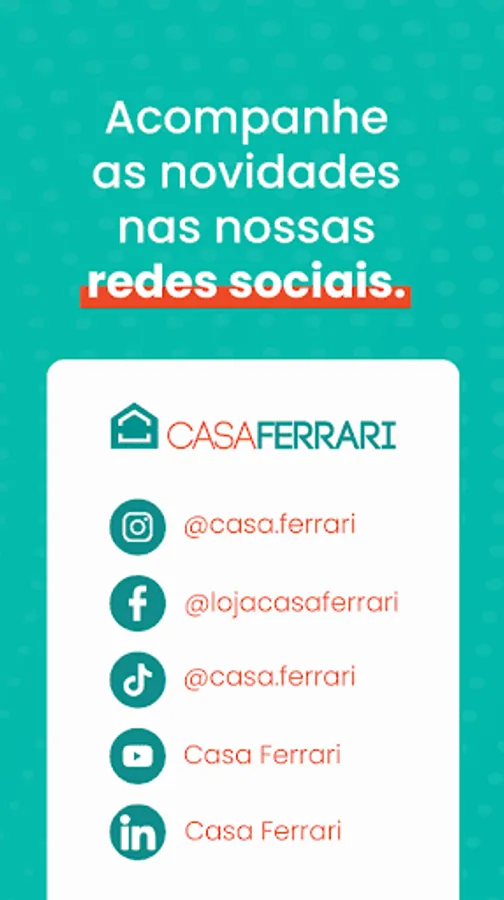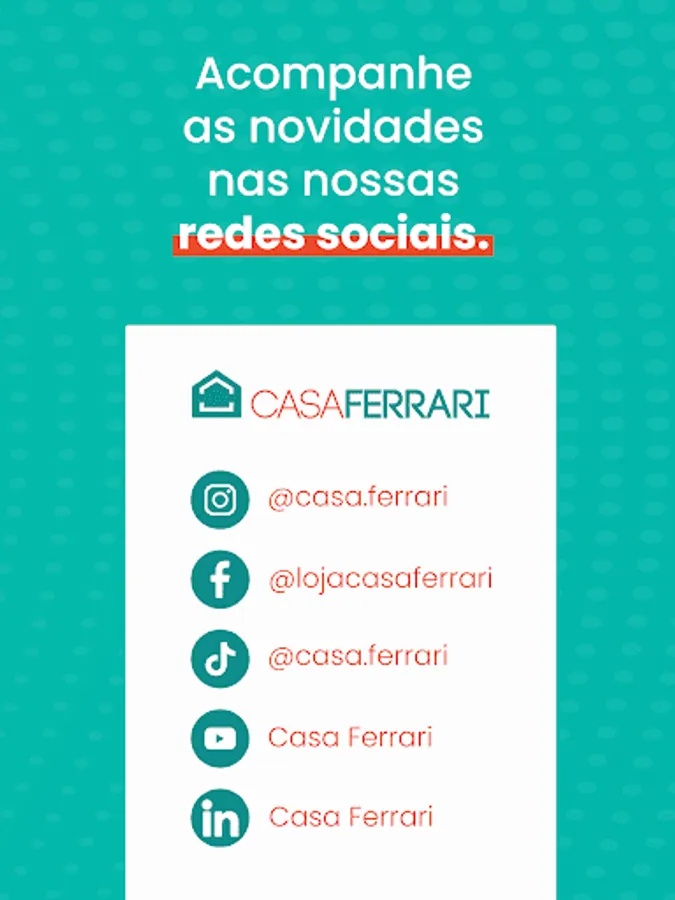 Download the Casa Ferrari application now and have the entire store in the palm of your hand, making your purchases easier and bringing practicality to your everyday life.