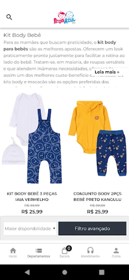 Rosa Azul Kids is the biggest and best children's fashion store in Brazil and it doesn't stop growing. In our app, you can more conveniently check all our news and the latest trends in the fashion world for children, anytime, anywhere and buy the best clothes to make your prince or princess always in style.