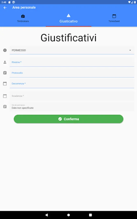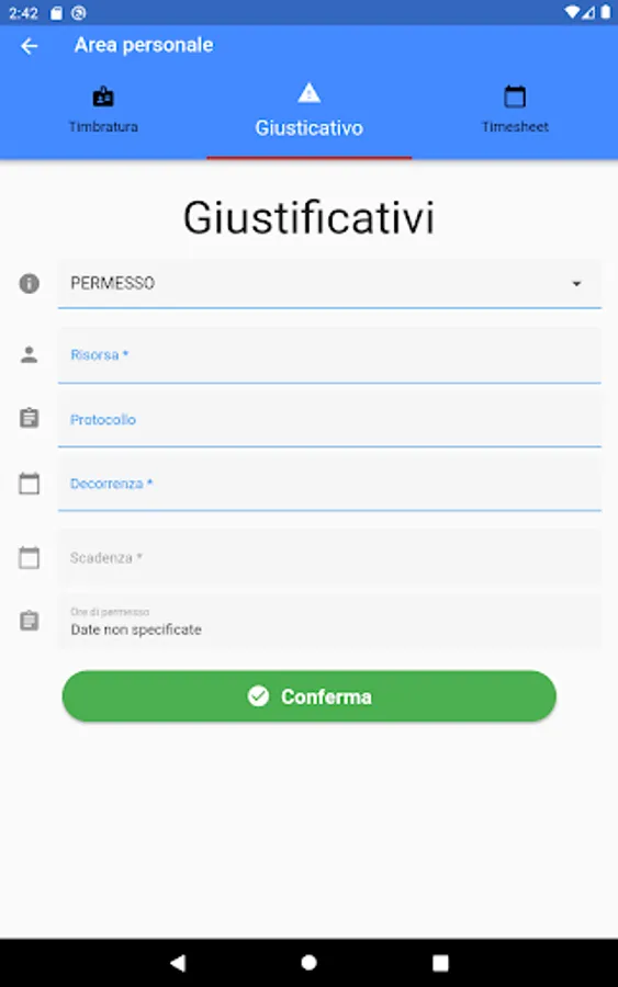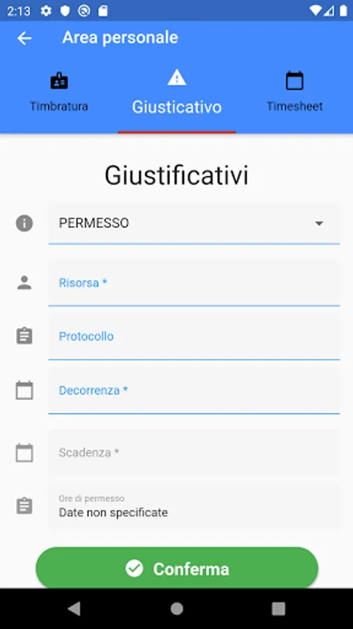 With Manager, each employee will have the opportunity to carry out and consult stamps, insert justifications and permits.