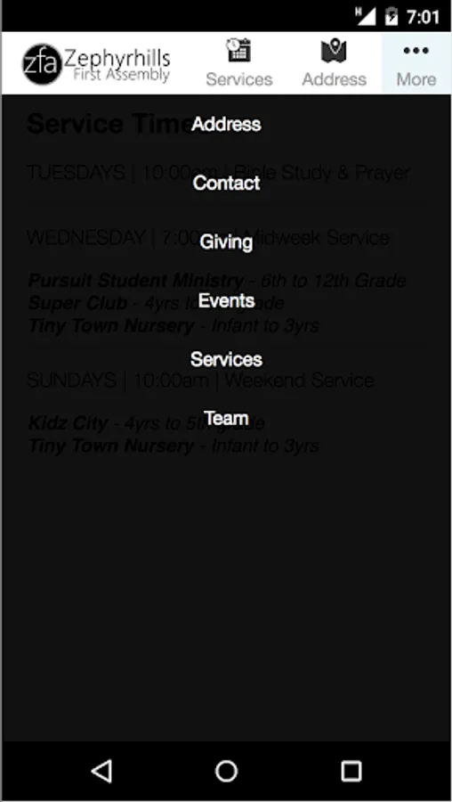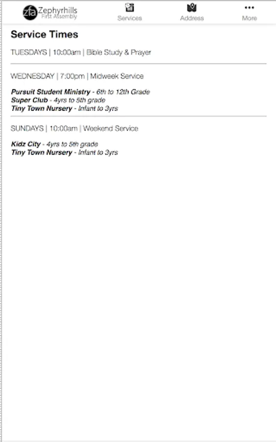 Zephyrhills First Assembly offers you the following Mobile Application, so you can stay up-to-date with services and events. The app will feature archived messages, podcast, and other content in the near future. You'll have great content at your fingertips to stay in touch with all that ZFA Church offers. We are committed to our vision: To love people, to see them saved, healed, set free, disciple, equipped, empowered and serving. God bless you.