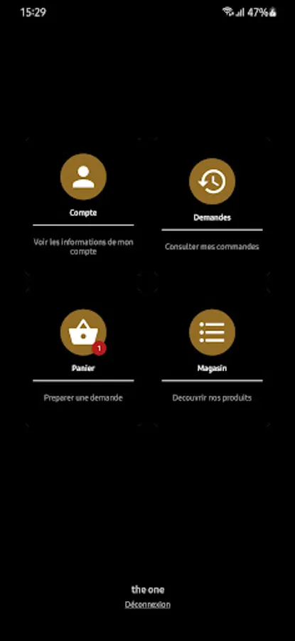 after authentication, this application allows the user to prepare a basket containing the products added during the exploration of the store made in the application, to check the status and view the history of these orders. moreover, he can consult his account and change the password
