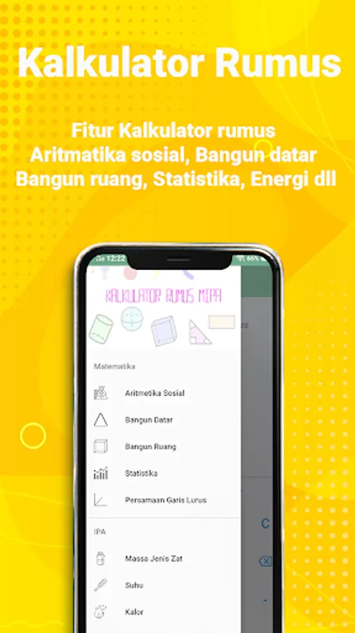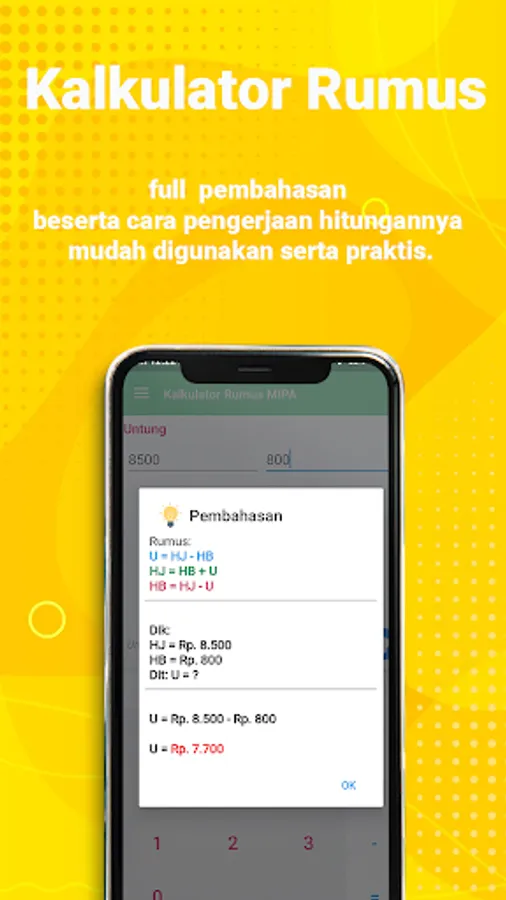 Calculator designed to make it easier to calculate mathematical formulas and natural sciences accurately for all grade levels ranging from grade 7, class 8 and class 9 complete with full discussion and how to do the calculations. easy to use as well as practical.