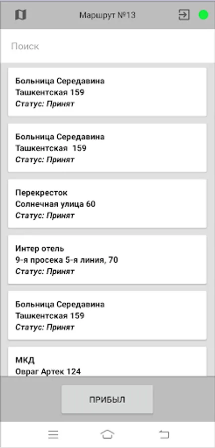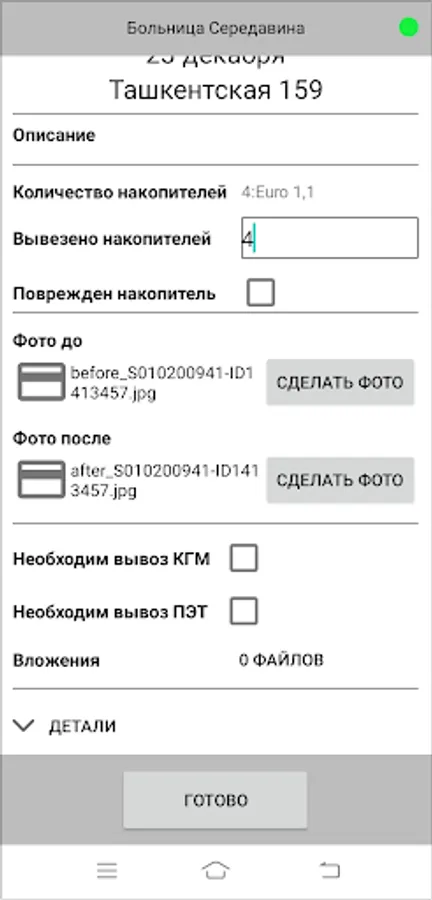The application is a source of up-to-date information about the assignment for the removal of MSW from the container site for the current day, as well as