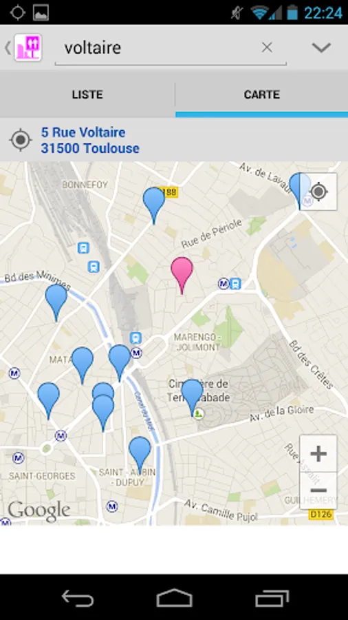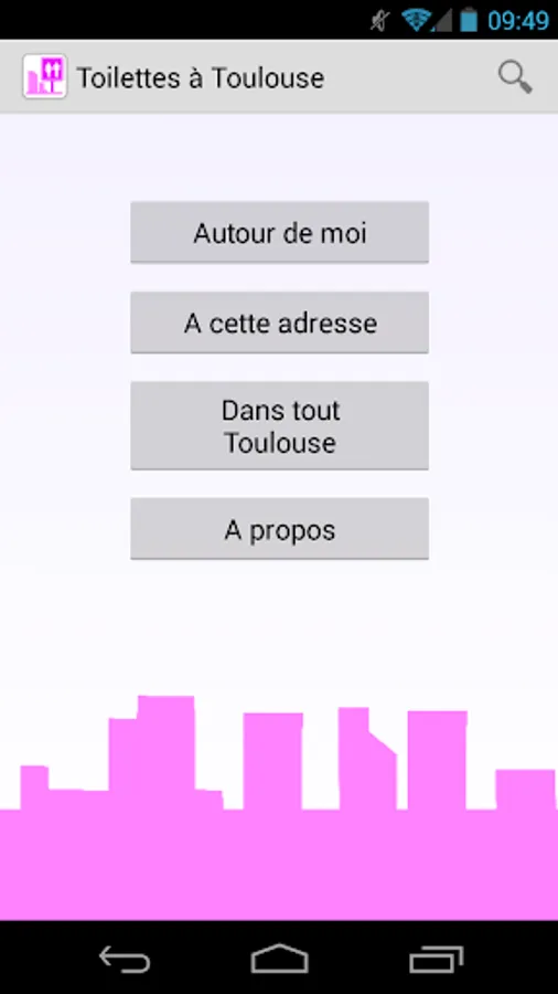 Toilets In Toulouse is an application that show all positions of public toilets Sanisette in Toulouse. Yan can make a search around your position or a search by address. Sanisette acessible to mobility-impaired persons are indicated. Moreover, the application can work without Internet connection.