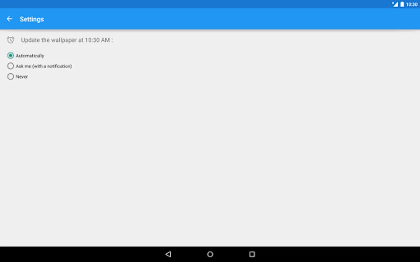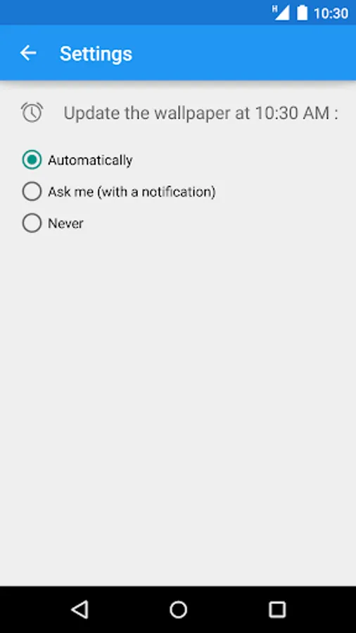 You can choose to set automatically the wallpaper on your device or manually thanks to a notification.