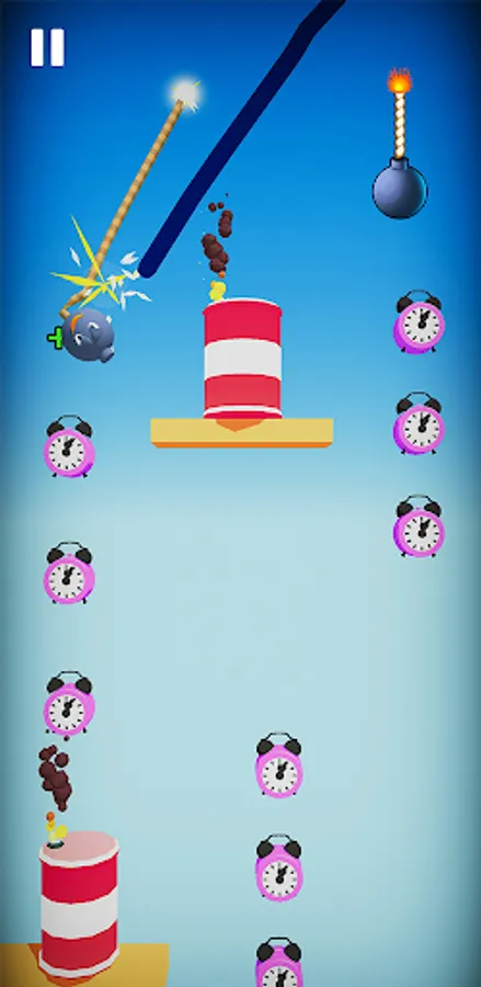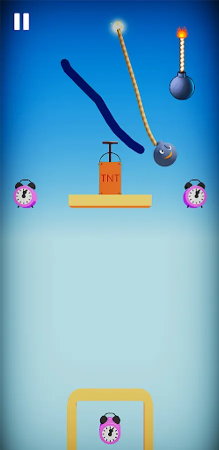Draw the lines and collect the extra times. But be careful TNT and barrels! If you hit them then no need to draw anymore :) But if you could make it to the end, you need to solve match puzzle!