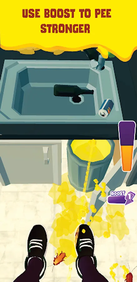 You have to scatter around to get to the next level. Give direction to your pee. Hit things around you.