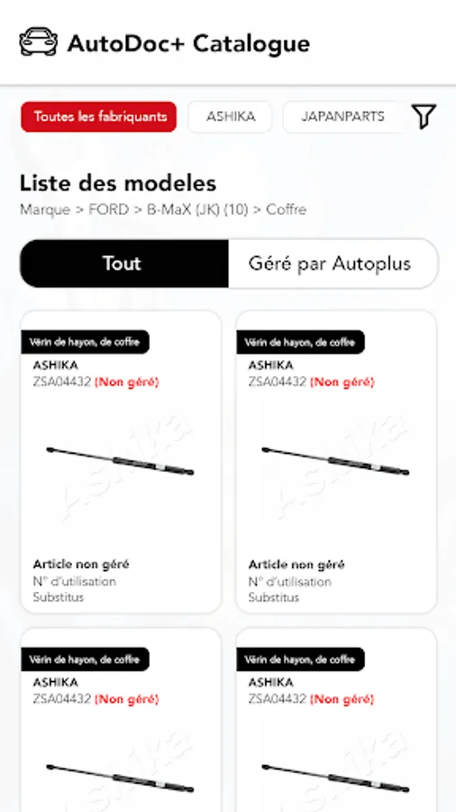 And that's not all ! The application offers you several advantages. You can now consult the AutoDoc+ catalog, which will allow you to identify the automotive spare part you need according to the make, model or VIN number of the vehicle.