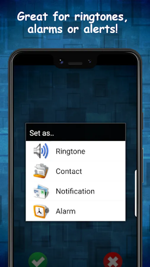 Simply select your favorite free text message sounds to listen to it and save by tapping the green check mark.