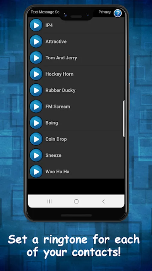 Easy to use and completely free mp3 text message sounds and ringtones.