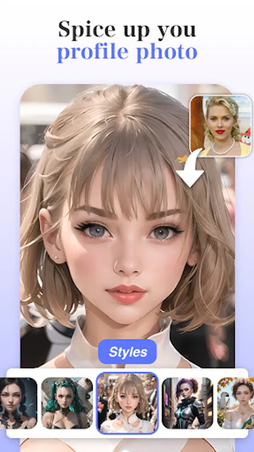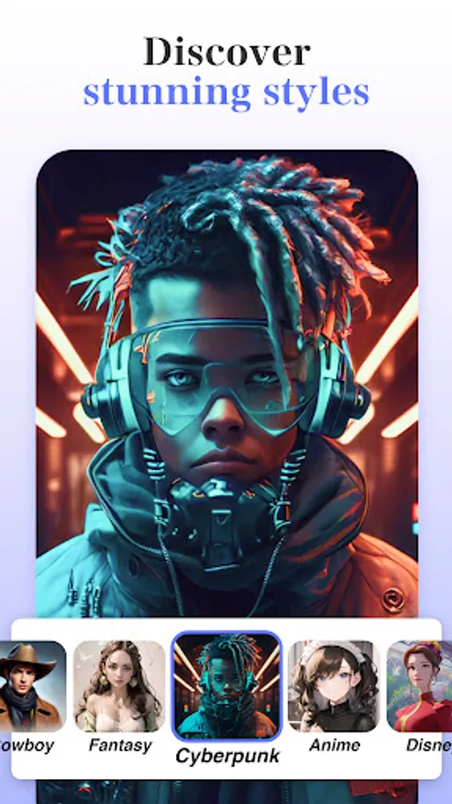 With Profile AI, you can create avatars in styles like professional headshots, desert punk, zombie/halloween-themed, Christmas-themed, jungle waterfall, dating app photos, medieval, first-person shooter, Instagram model, space cyborg, and more!