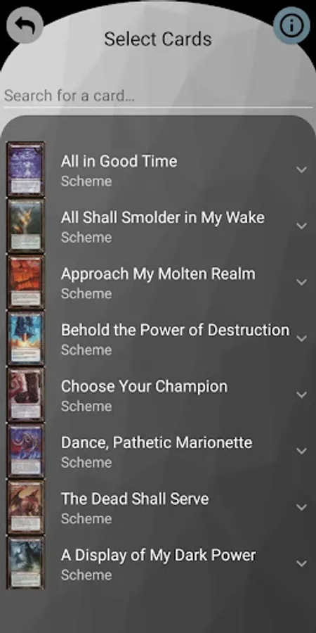 Archenemy is a simple app that aims to simulate a scheme deck in Magic the Gathering Archenemy and/or Archenemy Nicol Bolas.