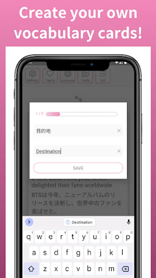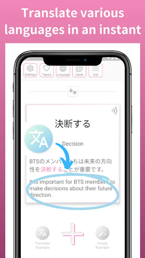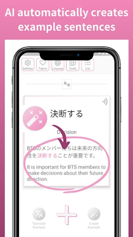Delve into your favorite topics effortlessly. Whether it's BTS, Sports, Artists, Movies, or any other subject that piques your curiosity, Smart Flashcards crafts engaging sentences that keep you captivated while expanding your vocabulary.