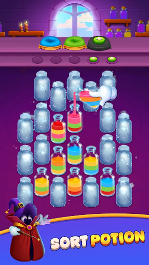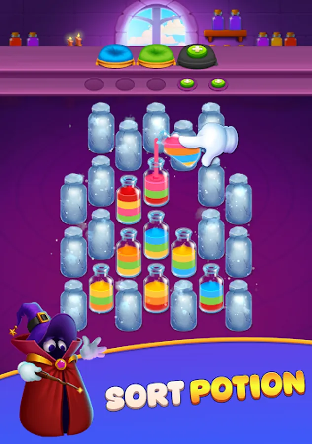 Sort the potions so each bottle holds only one color. Once a bottle is fully sorted, it will be placed on the pillow with matching color.