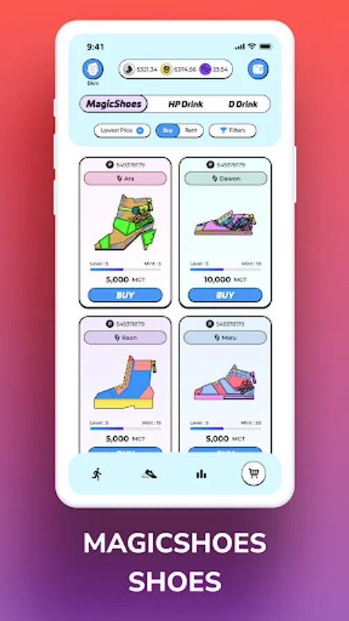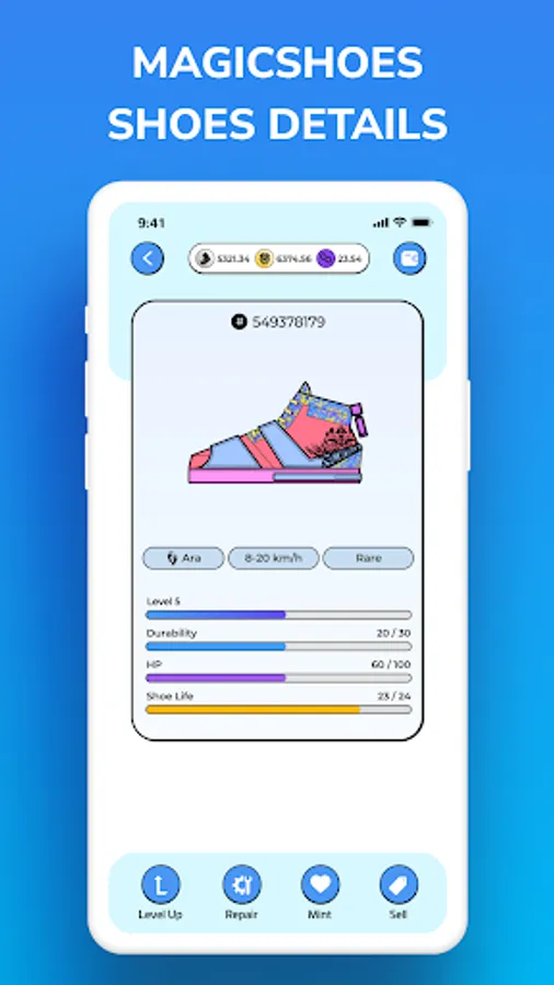 Magic Shoes is an M2E fitness rewards platform where you can play while walking, running, or cycling. Download the app, equip Magic Shoes NFT Magic Shoes, and earn tokens in-game. Each Magic Shoe has a unique design and rarity, which can be upgraded for more power. Magic Shoes tracks users' workout data, recording distance, time, and calories burned. Compare your personal records or compete with other users. Recommended for anyone pursuing a healthy lifestyle, the app adds fun and enjoyment to workouts and helps users stay focused through gamification. The digital aspects, such as NFT Magic Shoes, provide a fascinating new experience.