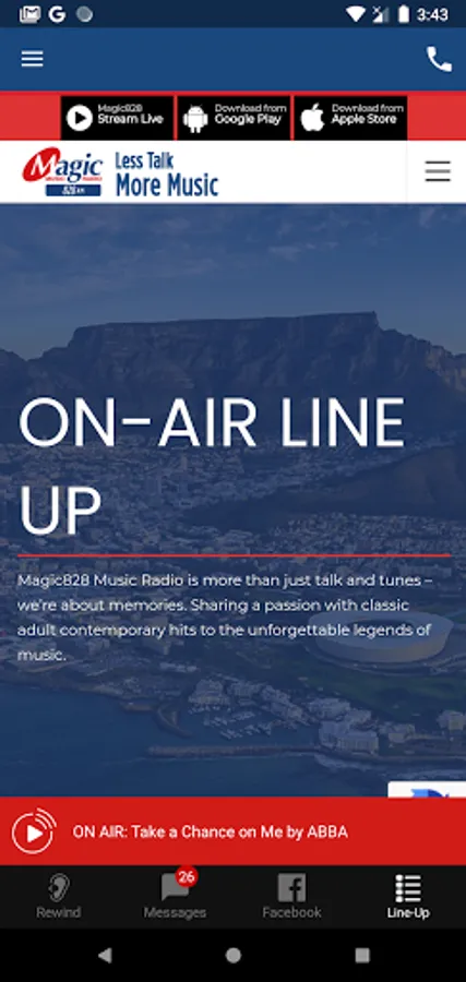 Magic 828 is a commercial music station, broadcasting to Cape Town and the greater Western Cape who are dedicated to changing the face of radio broadcasting in South Africa while making a difference to the daily lives of our listeners and their communities!