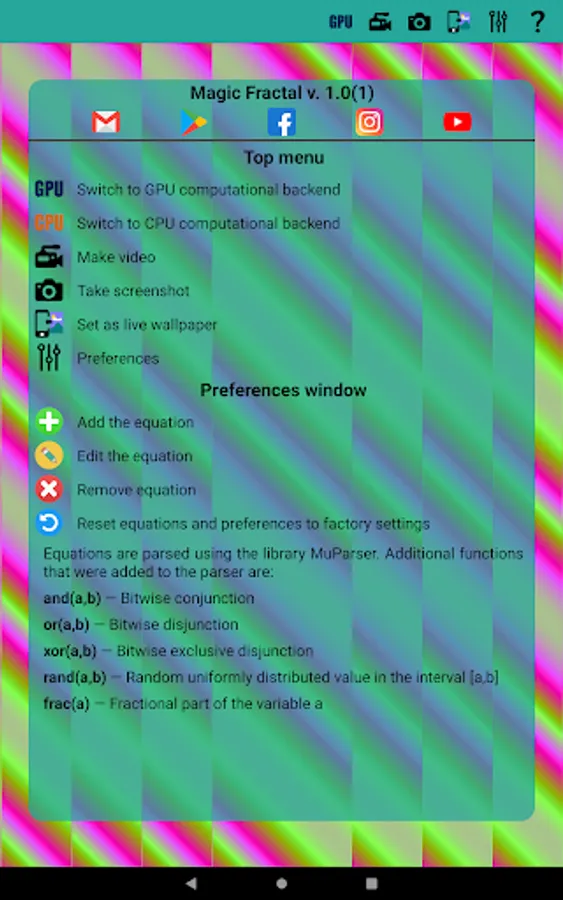 The Magic Fractal Live Wallpaper app allows you to enjoy beautiful animations of mathematical functions! That's not all: you can set the animation as live wallpaper and convert it to looped video!