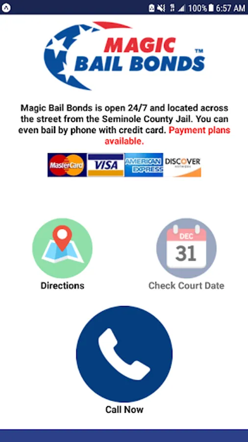 Magic Bail Bonds quick connect allows you to quickly and easily contact Magic Bail Bonds or get directions to the office.